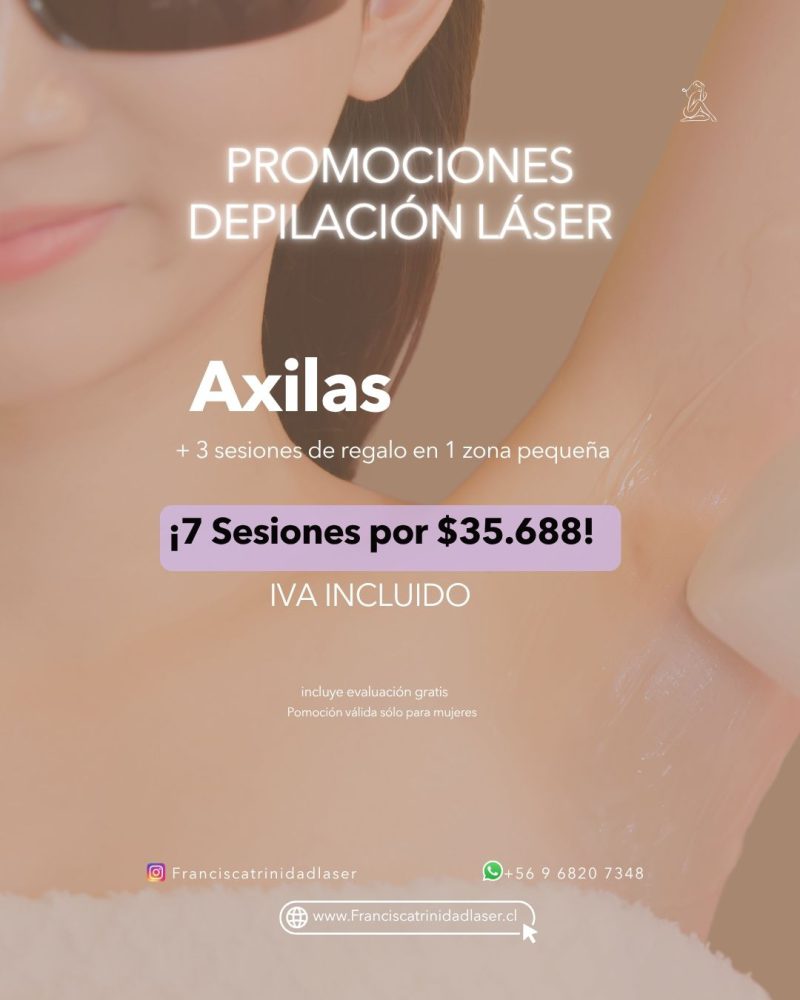 Incluye: 7 sesiones en Axilas + 3 sesiones de regalo en una zona pequeña a elección.
