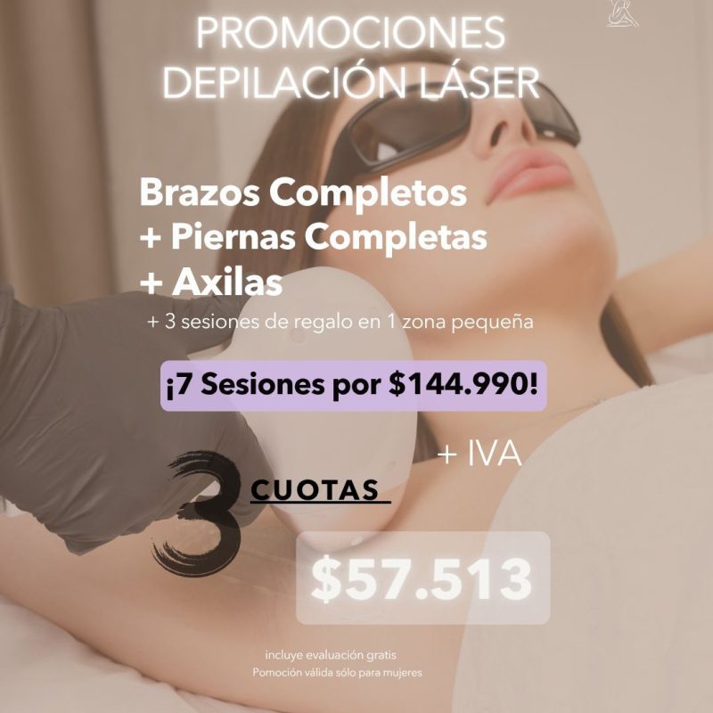 Incluye: 7 sesiones Medias Piernas y Axilas + 3 sesiones de regalo en una zona pequeña a elección.