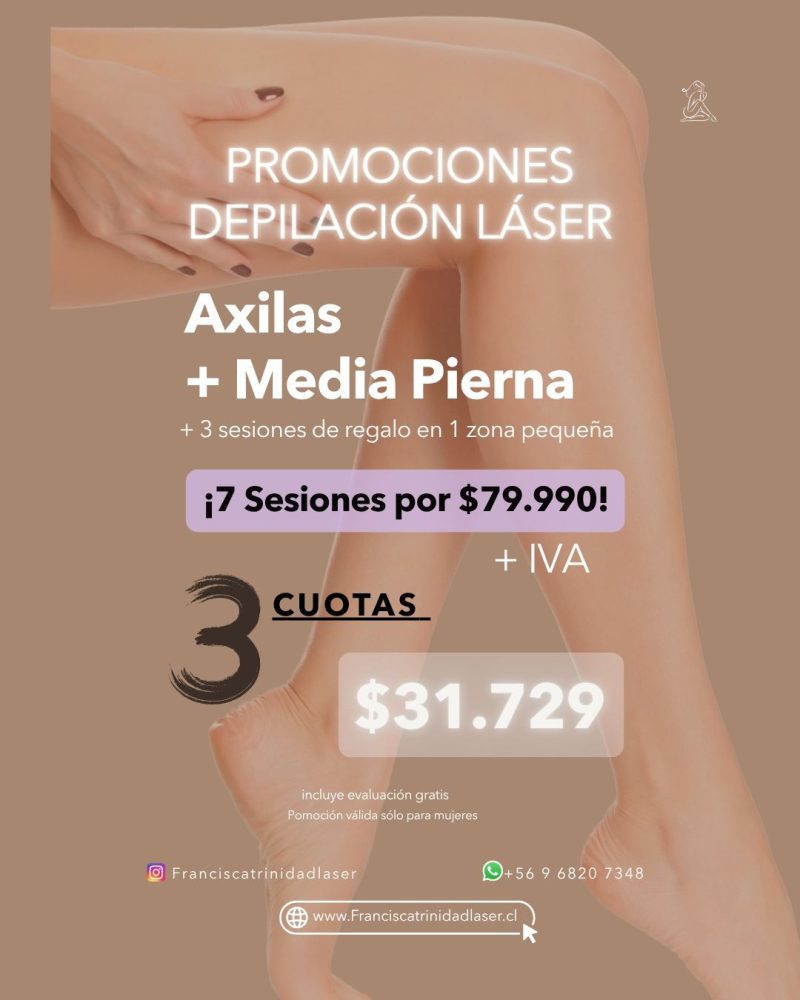 Incluye: 7 sesiones Medias Piernas y Axilas + 3 sesiones de regalo en una zona pequeña a elección.